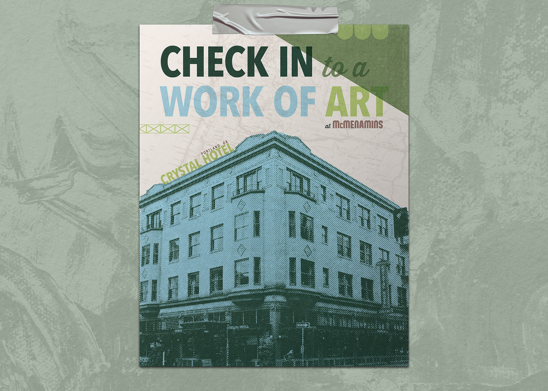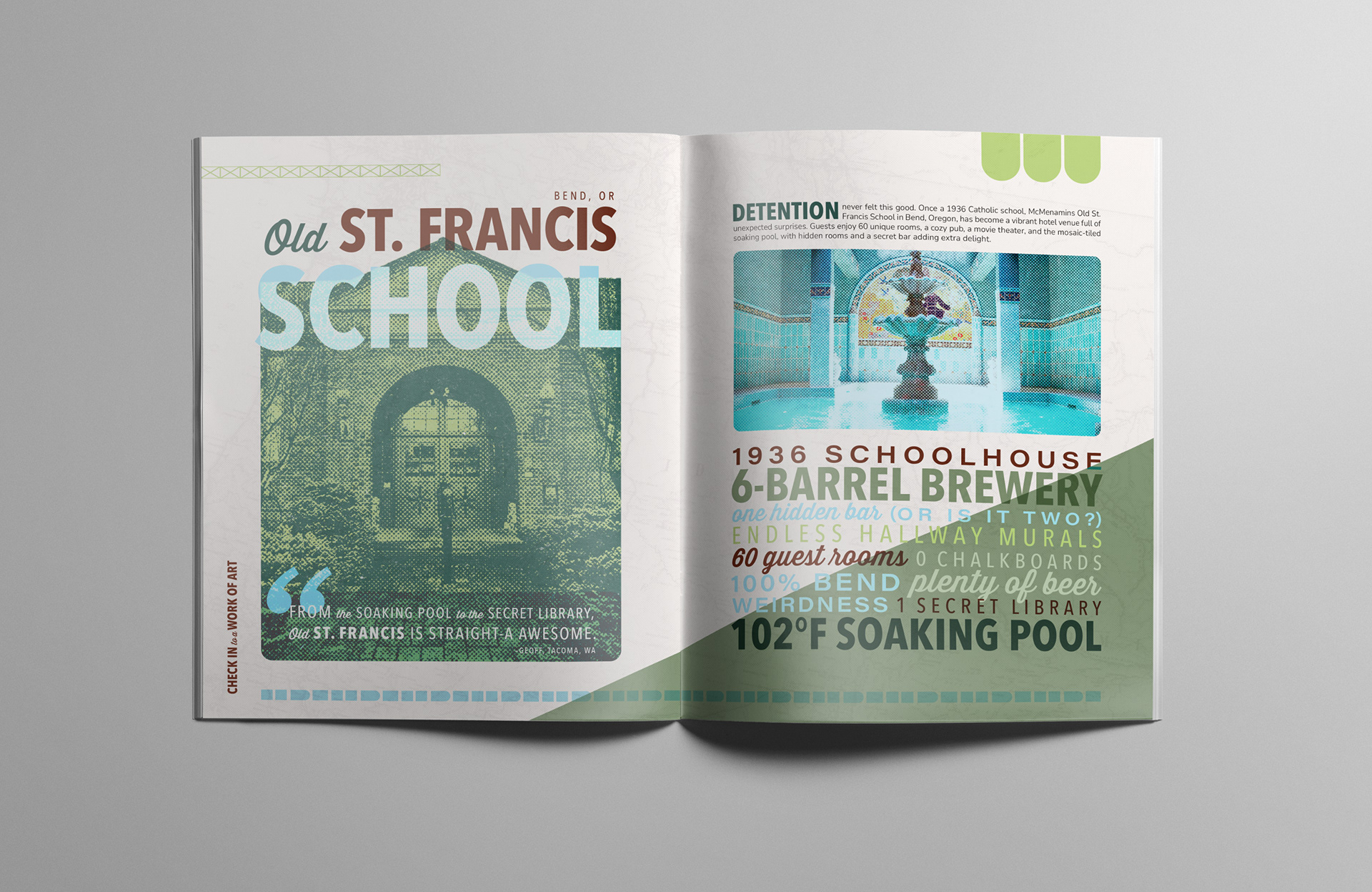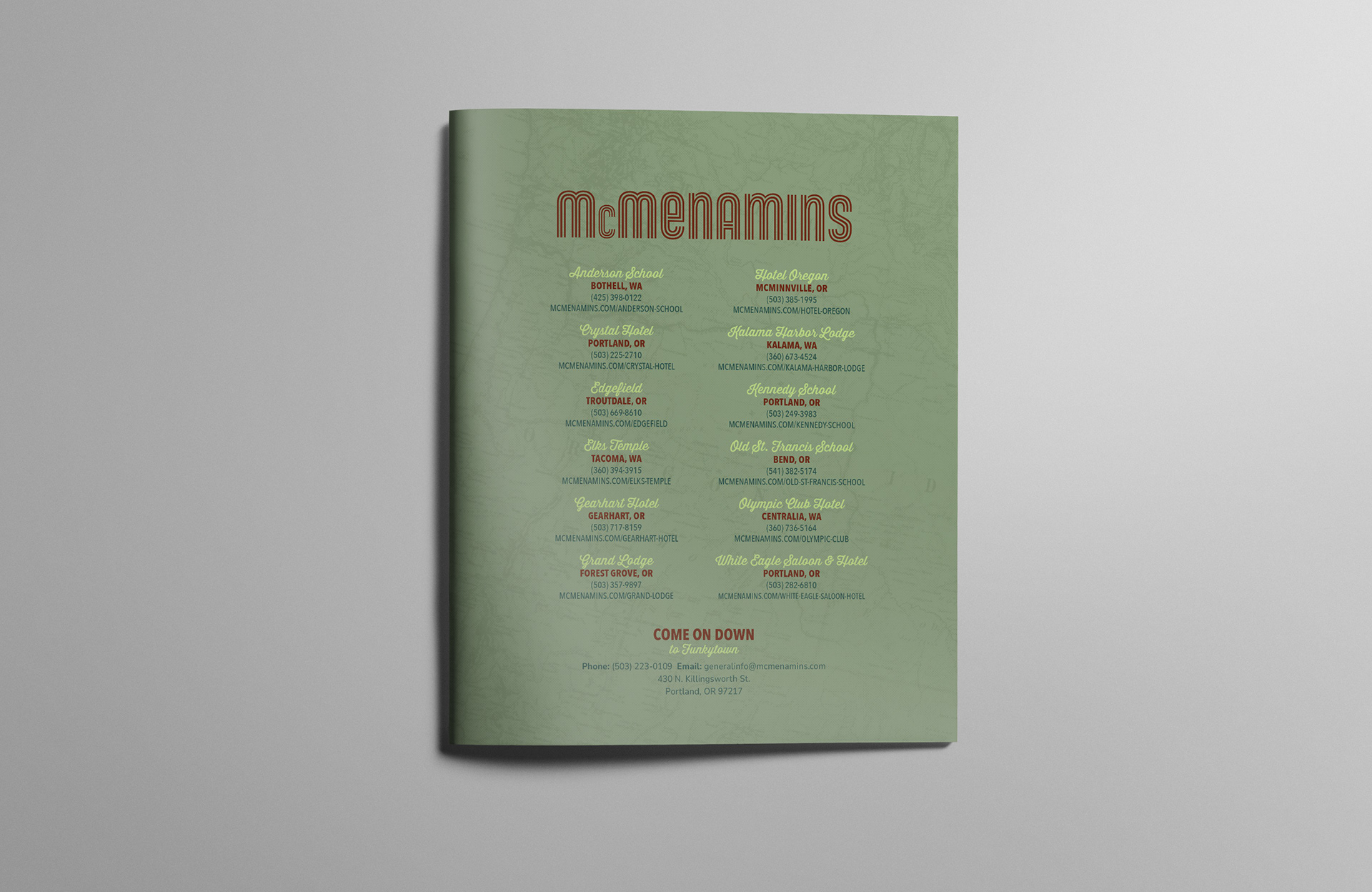 While McMenamins is rich with spirit and story, I wanted to imagine how a refreshed visual direction could capture that same magic in a new way. This brochure leans into an abstract, gritty, underground feel while still holding onto the whimsical, artistic playfulness that gives McMenamins its unmistakable character.