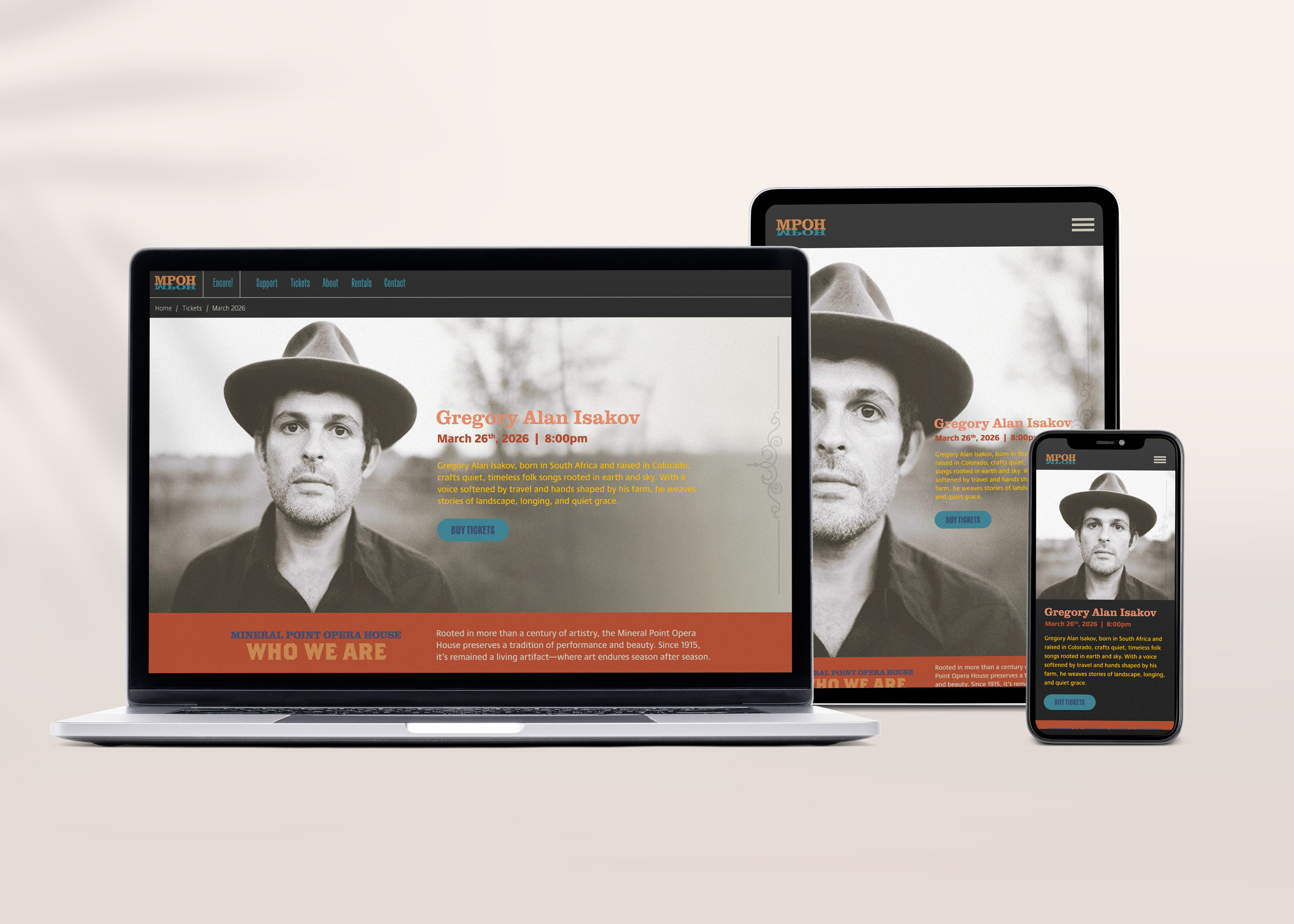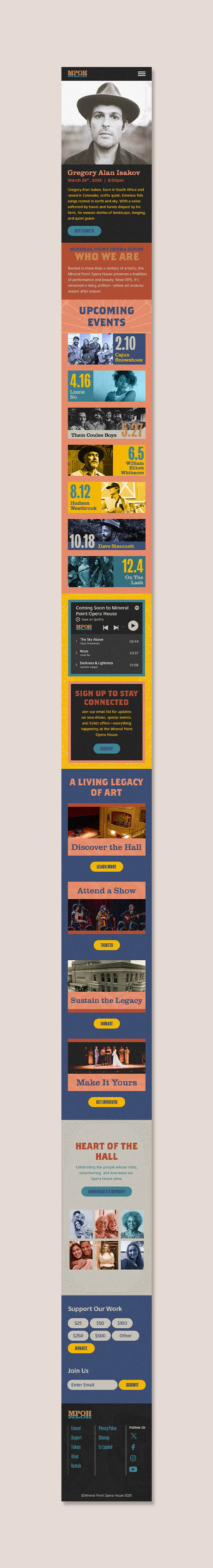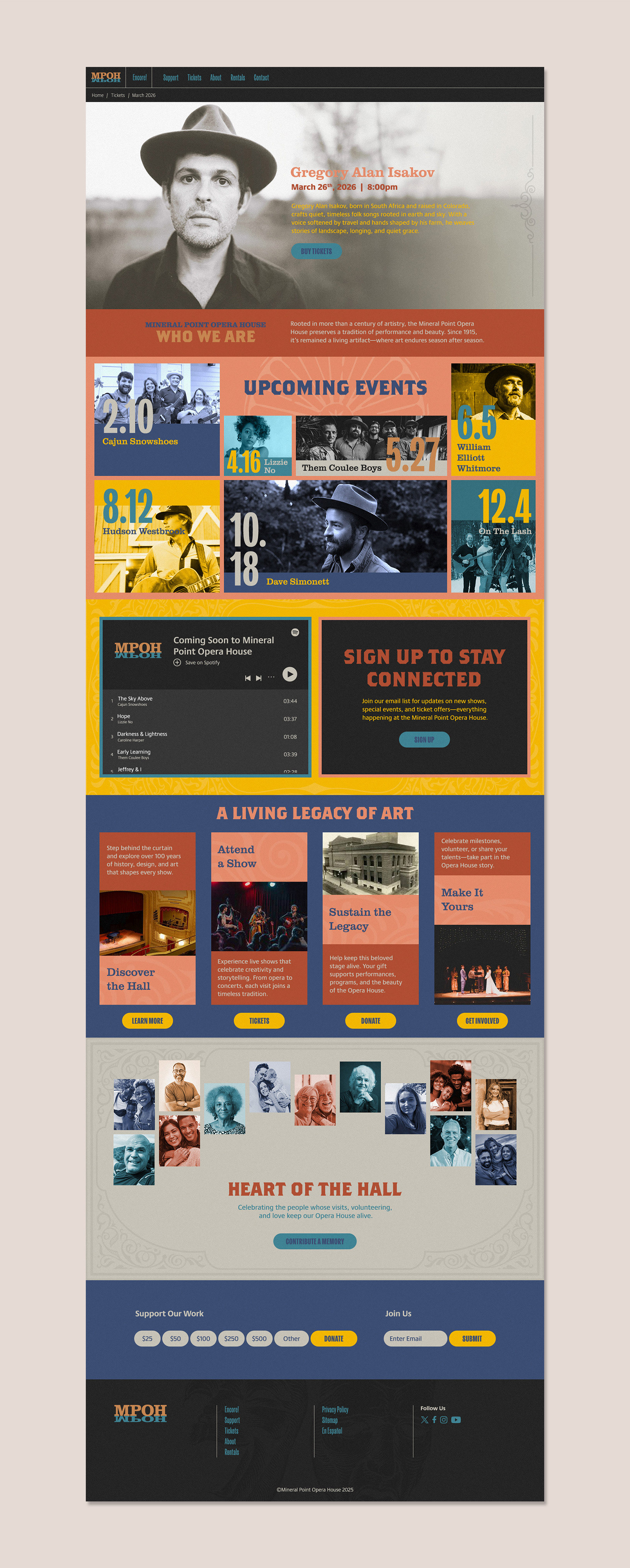 With its vintage character, ornate plasterwork, and steady role in the community, MPOH deserved a website that captured both its history and ongoing vibrancy. I redesigned the site to lift it out of a generic template and create an online presence that proudly reflects the theatre’s heirloom charm, iconic architecture, and warm, welcoming atmosphere.